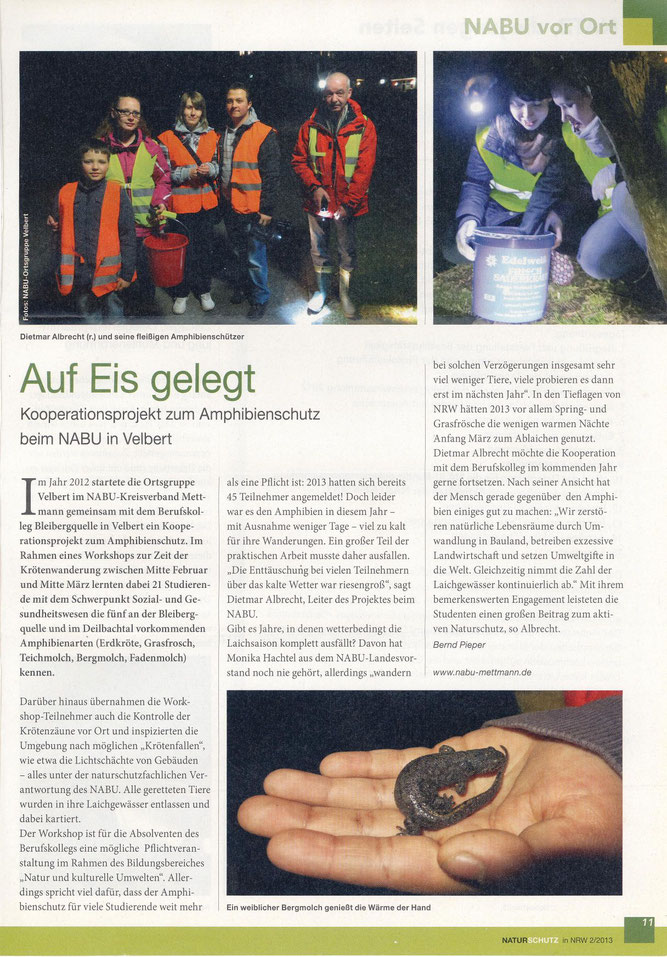Velbert / Amphibienschutz / ... Kooperation mit Berufskolleg Bleibergquelle